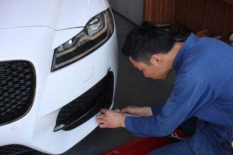 フロントバンパーの一部分をカーラッピングしてオリジナルデザイン