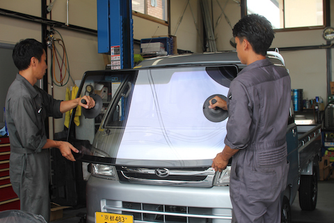 フロントガラスは、純正ガラスより1/3の価格の優良ガラス、付加価値が付いて、価格も安い、断熱や熱反射ガラスがあります。