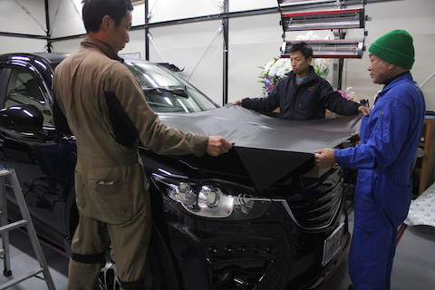 カスタムされたマツダ CX-5、カッコいいですね。でも、お客様は『もっと』カッコ良くしたいっ!と、カーラッピングをご依頼頂きました。