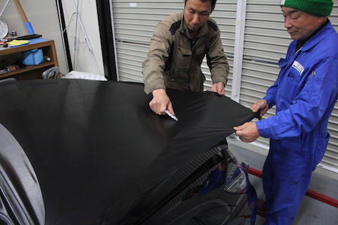カーラッピングとは、色付きのステッカーシートをボディーに貼って、色替えを愉しむ方法で、塗装と違い剥がして元通りに出来るんです。