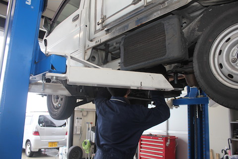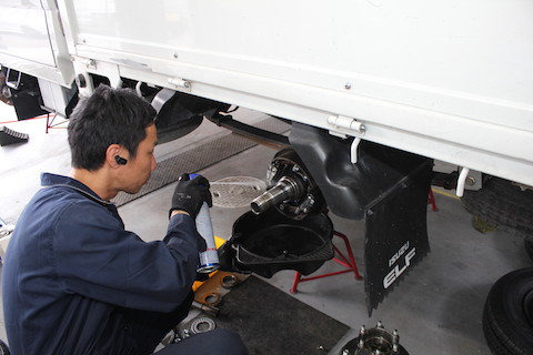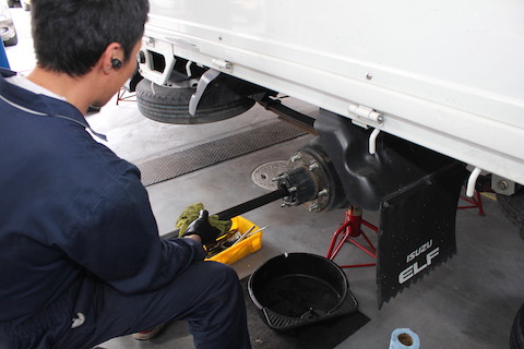 大阪府交野市より、イスズ エルフの車検でご入庫。新車から2年間、色んな現場でがんばってきたので、しっかりメンテしていきます!