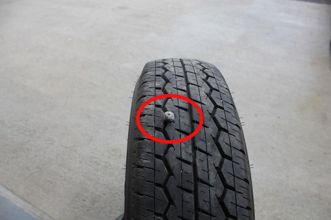 お客様から連絡があり、『ひとつタイヤの空気が減っているんですけど』とのご相談。よく見るとネジが刺さっていました!