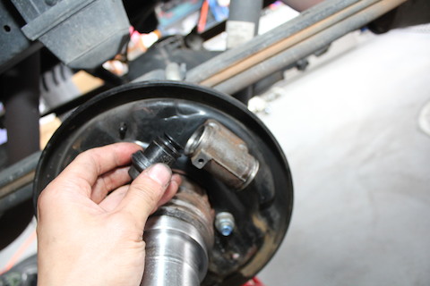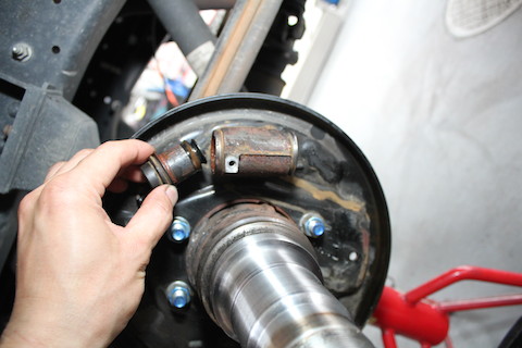 リアのブレーキですが、フロントの様に外から状態が見えないので、部品をたくさん外さないとチェックできません。タイヤを外して、シャフトを抜いて、