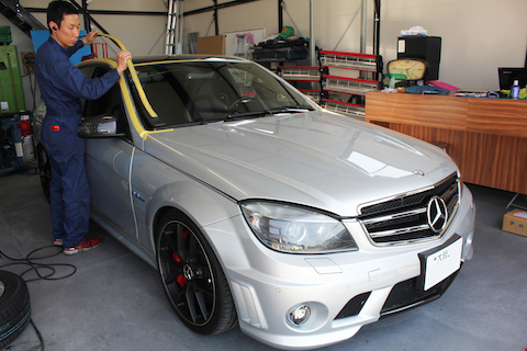 大阪府門真市より、ベンツ AMG C63のフロントガラスに、端まで伸びてしまったキズがついたとご連絡を頂きました。