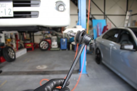 今回は、スタビライザーリンクのゴムが破れています。このまま放置すると、関節部がさびてしまい、動きが悪くなって、折れたりしてしまいます。