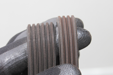 そして、ベルト。ベルトの劣化により、エンジンかかっている時、『キュッキュッ』言っていました。右側のベルトは痛んでいました。