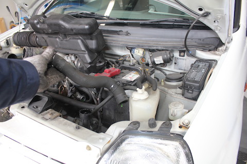 大阪府交野市より、前から『コンコン』聞こえると、ワゴンRスティングレーが緊急入庫。
