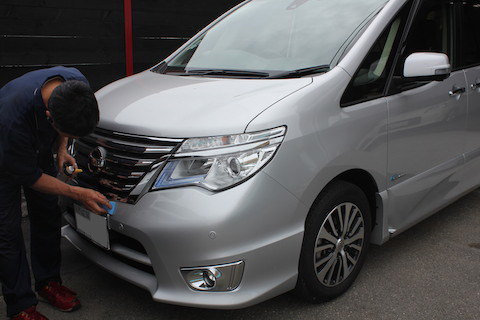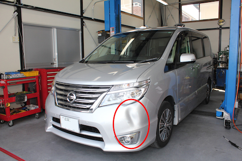 滋賀県長浜市より、セレナのヘコミ修理でご来店頂きました。駐車場に停めてたら、『当て逃げ』されたそうです!