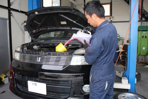 エンジンを冷やすクーラント液(冷却水)は、定期的に交換が必要です。デントスマイルでは、車検のタイミングで交換をオススメさせております。