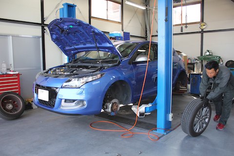 大阪府枚方市より、ルノー メガーヌの車検でご入庫。なかなか目にしない珍しい車です!
