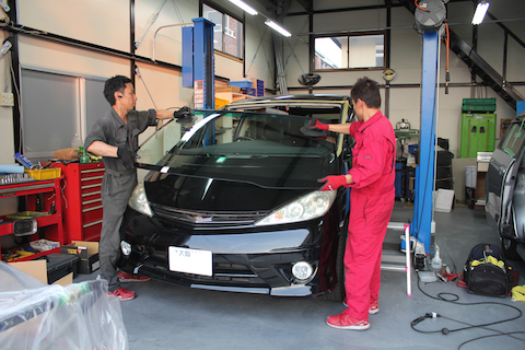 大阪府枚方市より、エスティマのフロントガラス修理でご来店頂きました。残念ながら、長いヒビが入っている為、交換となりました。