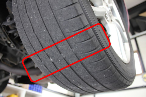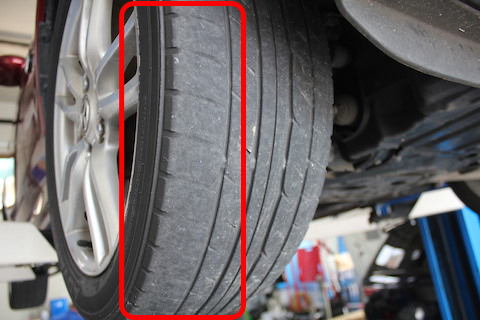 車検で何時もチェックしてるのですが、タイヤの前後ろの減り具合。前は、ハンドルを切ったりするので、角が減っていきます。