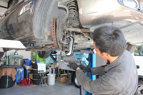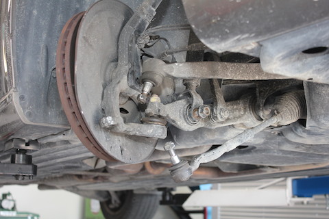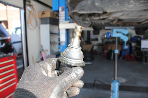 大阪府枚方市より、ベンツCLS350が異音で入庫。右前あたりから、『ギーギー』聞こえます。原因は、ロアアームのジョイントからでした。