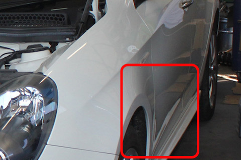 塗装も削れ、鉄板も大きく伸びてしまっているので、板金・塗装で直す事になりました。
