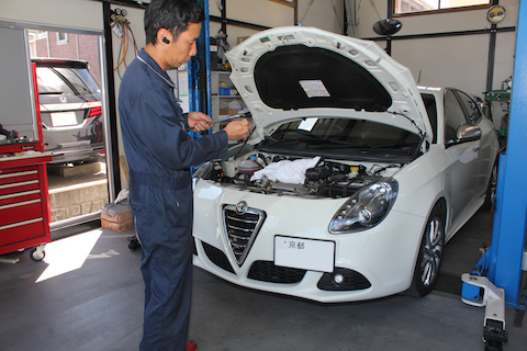 京都府京都市より、アルファロメオ ジュリエッタのご来店。エンジンがポコポコとアイドル不調。