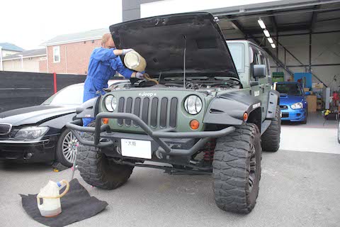 続いて、ラングラー JKのカスタム・フルラッピングしたお客様のオイル交換でご来店。