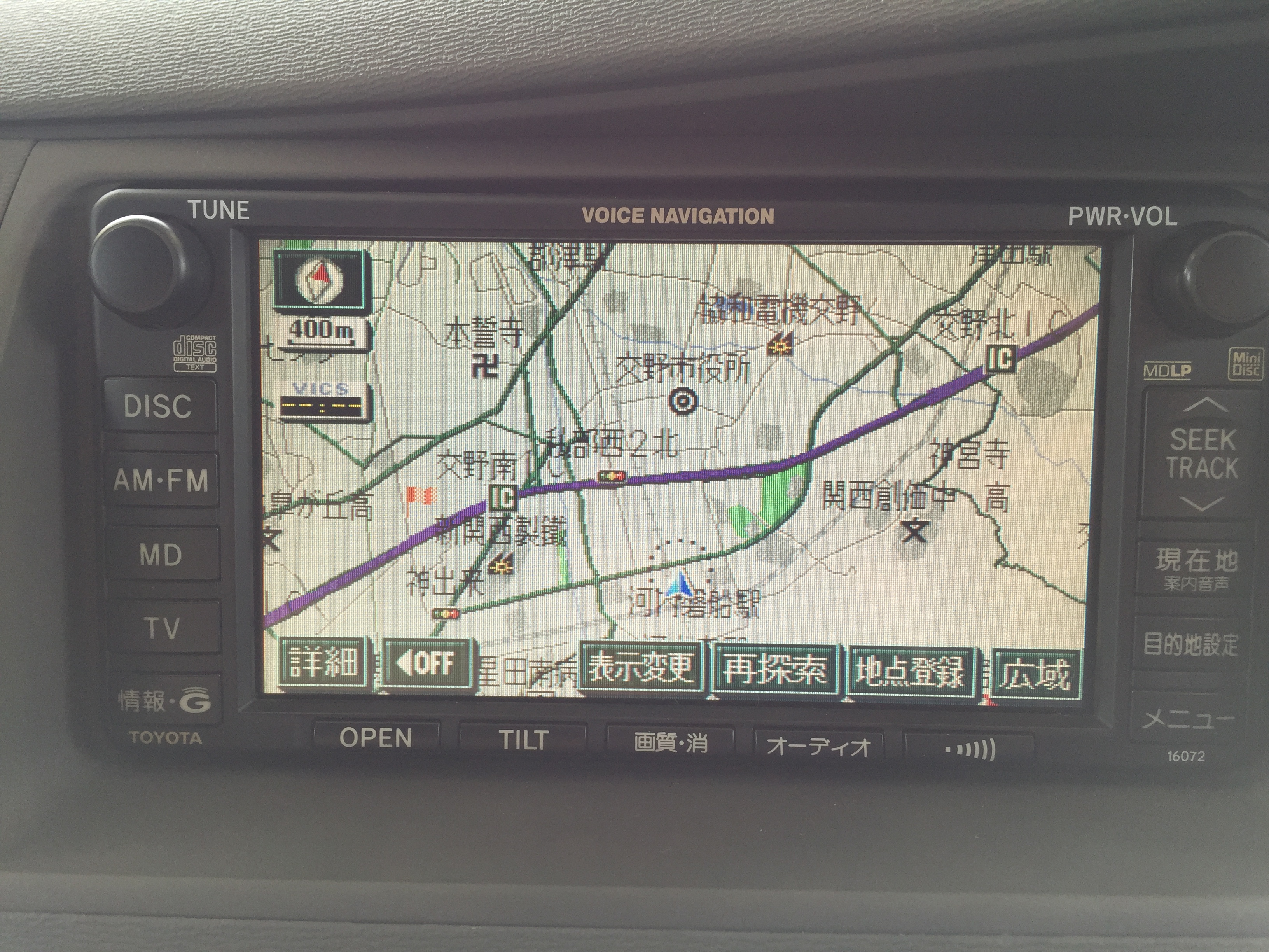 こちらのカーナビも、デントスマイル近くにある第二京阪が載っていません。