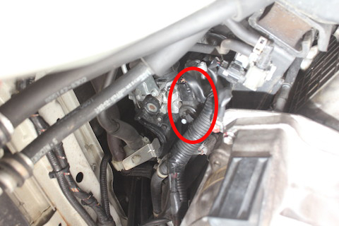 スロットルボディ下あたりにある、アイドリング調整部をとると、