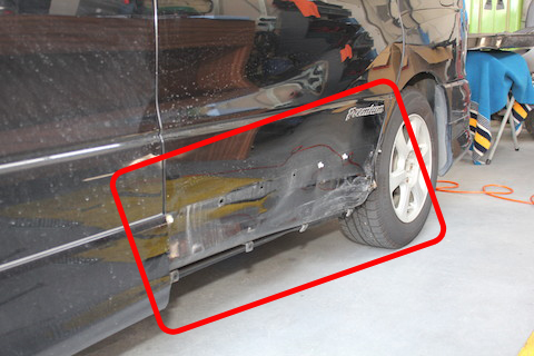 なにか縁石に乗り上げたのでしょうか、周りもキズがいってます。