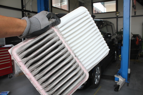 まずは、エアエレメント。左の様に汚れてしまうと、空気の取り入れが悪くなったりします。