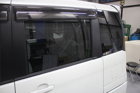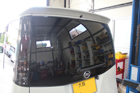 大阪府交野市よりご来店のルークスに、カーフィルムを施工させて頂きました。プライバシーガラスで、ガラスは少し薄く黒いですが、中は見えています。
