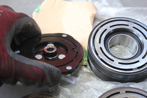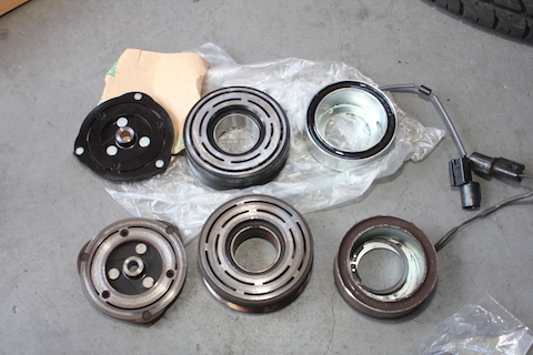 詳しく調べて、コンプレッサーの電磁クラッチ部の故障だと絞り込む事ができました。コンプレッサーの横に付いている部品です。
