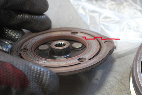 クラッチプレートが摩耗しており、段差ができています。これが原因ですね。