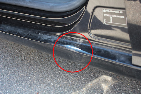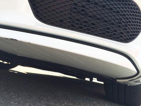 左前バンパー下辺りをこすってしまったそうです。純正の車高でも、段差の大きな部分では当たってしまう事も・・・