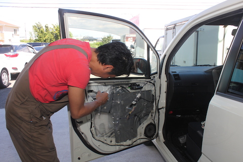 デントスマイルは、輸入ガラスという、形・品質同等のガラスで、純正ガラスの1/3までお安くするガラスをご用意できます。しかも、ガラス上部に減光するボカシもサービスでおつけいたします。