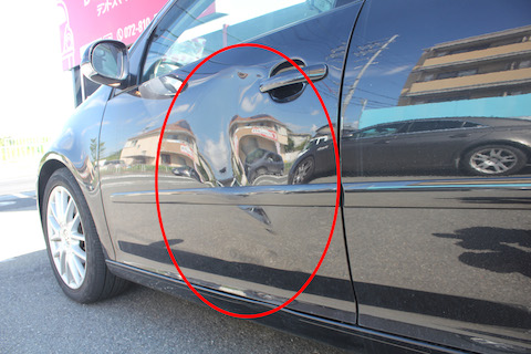 左ドアが大きくへこんでいて、交換しか無いレベル。でも新品交換ではお財布の負担が大きい。