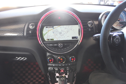 最新のミニって変わりましたね。元々メーターだったパネル部分に、ナビが埋め込まれています!