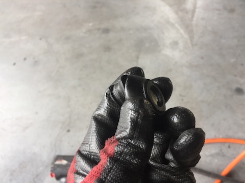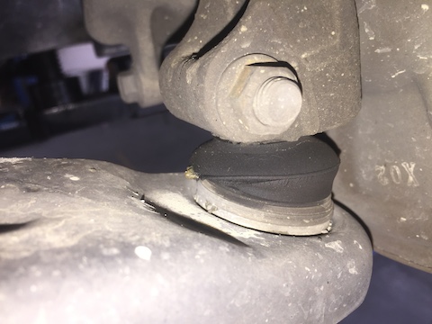 今回の点検で不合格になった場所は、ロアアームのブーツ破れ。