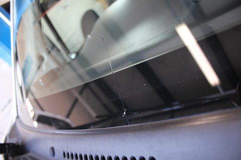 飛び石がフロントガラス下側に当たって、キズが伸びたようです。端っこはホント弱くて、キズが伸び易いんです。