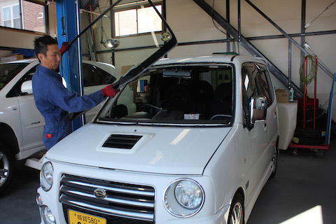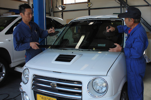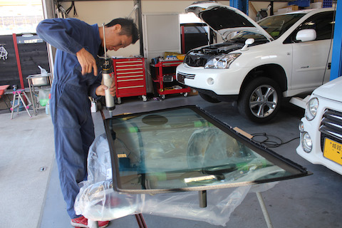 フロントガラスは、接着剤でボディに固定されているので、外すのに技術がいります。