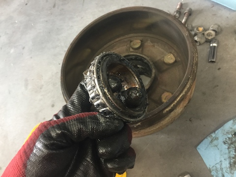 そして、組付けていくのですが、タイヤを円滑に回すベアリング部が汚れて真っ黒!!