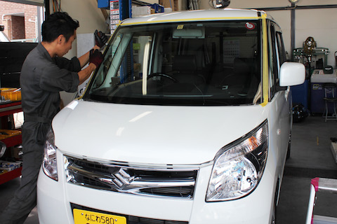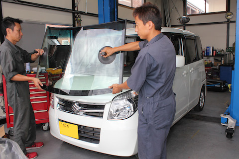 フロントガラスは、もちろん純正より1/3の費用で手に入る輸入ガラス。しかも、フロントガラス上部にボカシもオプションで追加できます!