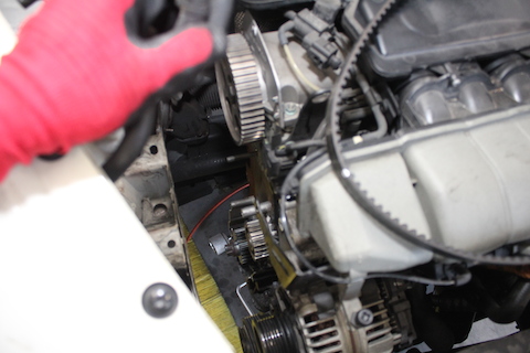 エンジン横のスゴい狭い隙間で、タイミングベルトとウォーターポンプを交換します。タイミングベルトの交換って、ベルトで連結されたギアの位置関係がすこしでもズレたら、エンジンが死んでしまうという、とてつもないリスクがある作業!!