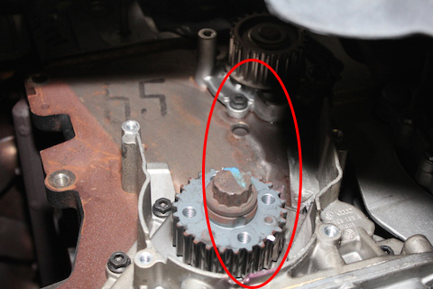 細かく点検していくと、ウォーターポンプからの液漏れ。冷却水を循環させるポンプで、タイミングベルトで駆動させる部分。