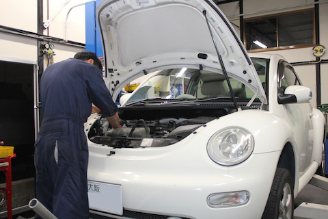 大阪府交野市より、フォルクスワーゲン ニュービートルのご入庫。さっそく調査へ!