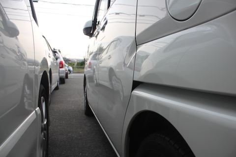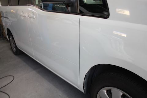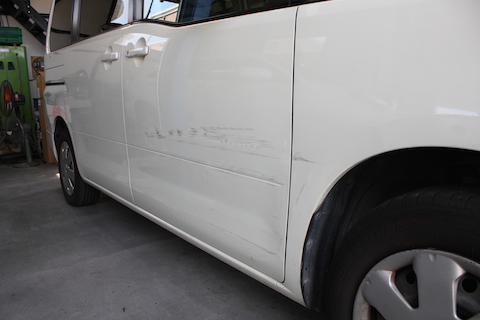 右前フェンダーから右前ドアとスライドドアと、3面の修理。10万円は超えちゃう修理代。