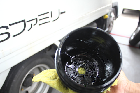 三菱キャンターの燃料フィルターを交換したのですが、ケース内にヘドロの様なものが?!
