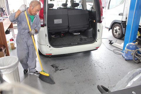 小さな破片は車内にもいっぱい飛んでますので、しっかり掃除もします。
