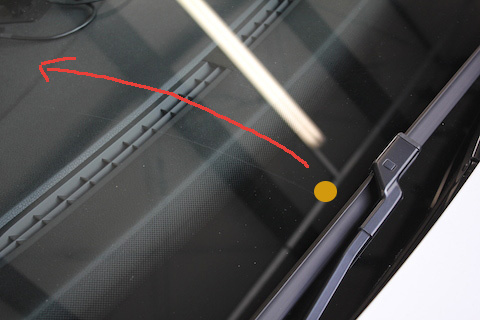 雨の中、前から飛んで来た飛び石が、ワイパーの上に乗ってしまい、そのまま自動でワイパーが動いて、フロントガラスにキズが付いたそうです。