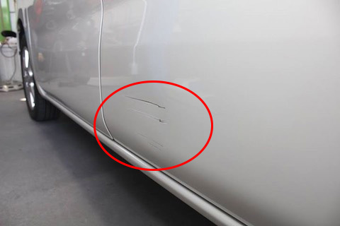 お客様が別件で、右ドアのこすれたキズも気になるから、板金・塗装のお見積りを依頼受けました。