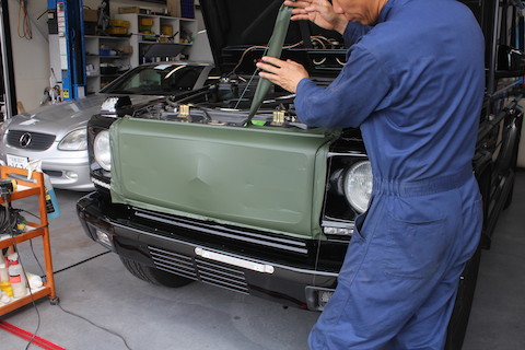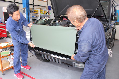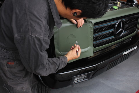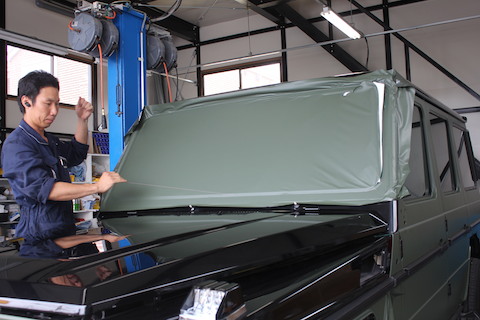 ボンネットや屋根みたいな大きな部分の施工をご紹介。