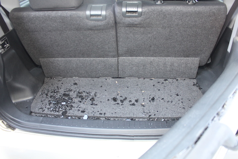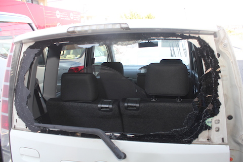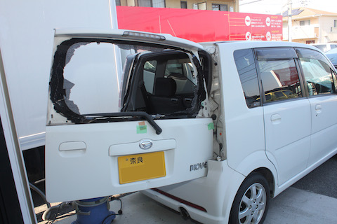 『ガシャン』と音がしたら、リアガラスが粉々に・・・。バックしてる時、見えない突起物に当たって割れる事があります。