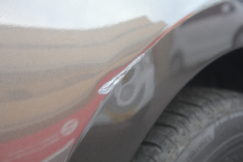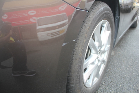 左のフェンダー部も塗装が剥がれて、プレスラインにへこみが出来ています。