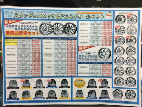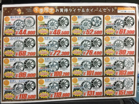 今回ご用意したのは、デントスマイルでオススメのスタッドレスタイヤとホイールセット。(すべて税込み価格)