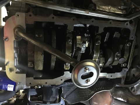 原因は、エンジンオイルをためているオイルパンからのオイルが漏れいました。