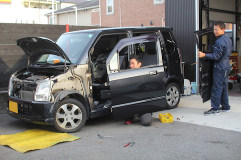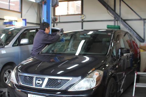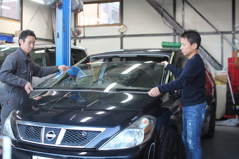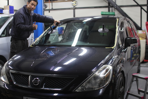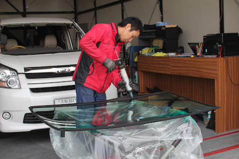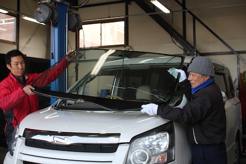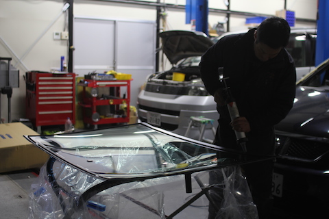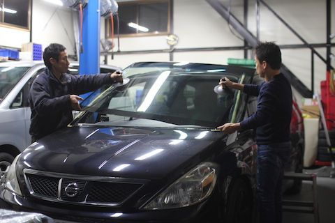 ほとんどの車屋さんは、ガラス屋さんを呼んで修理します。すごく特殊な方法がないと、ガラスを取ったり、つけたりする事ができません。